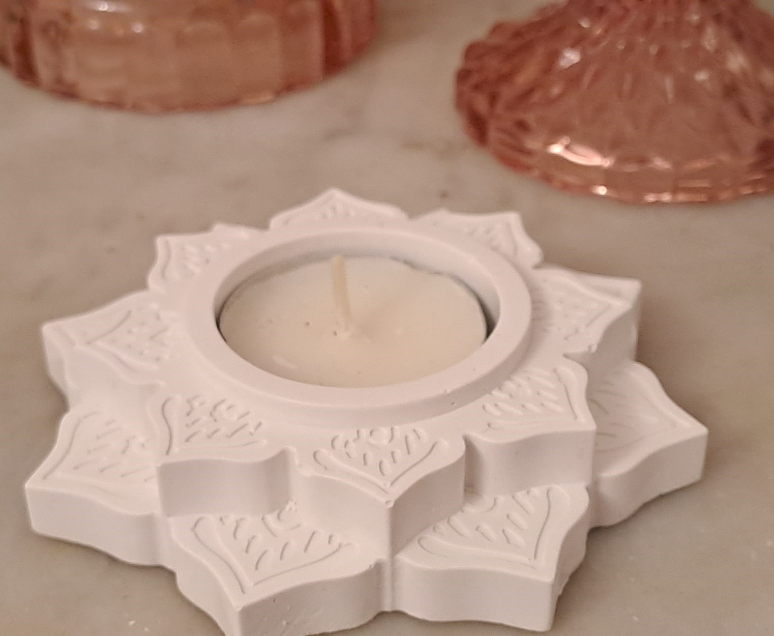 Porta candela a forma di una rosa con i suoi petali decorativi