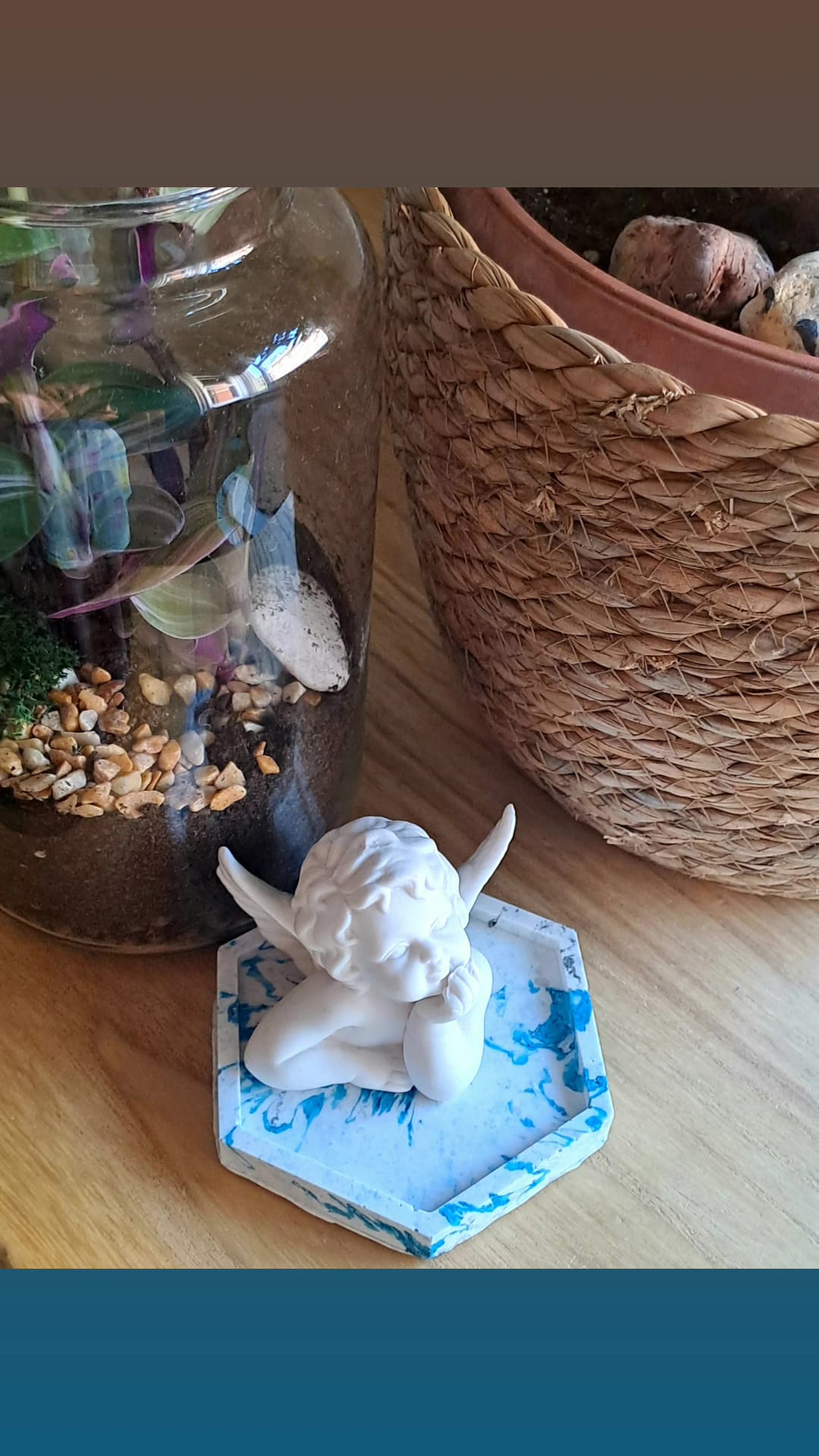 Sotto bicchiere o porta oggetti dipinto con tonalità bianco/carta da zucchero che enfatizza lo spirito celestiale ed angelico