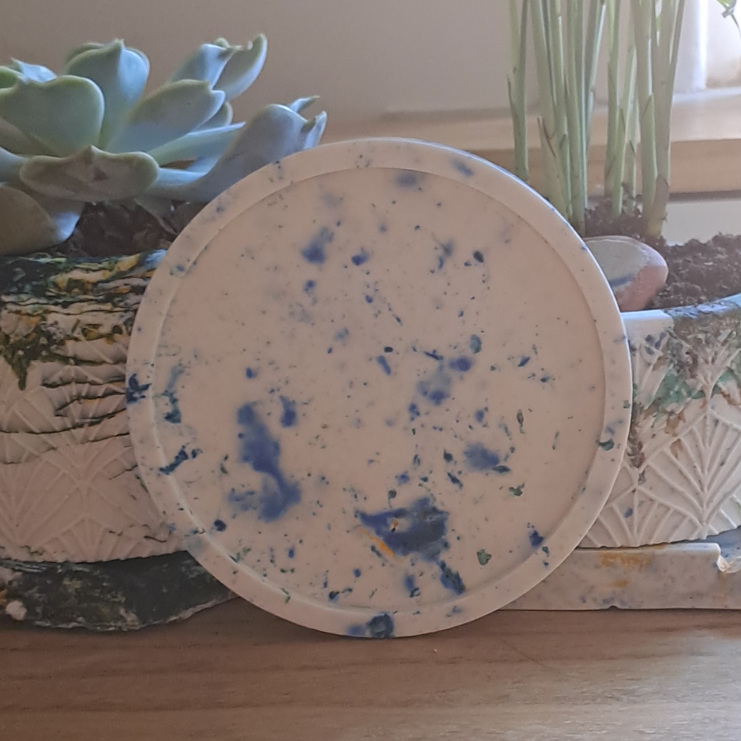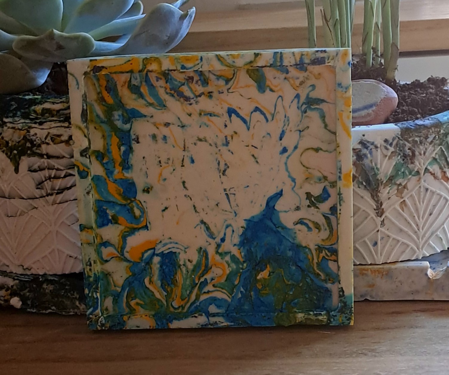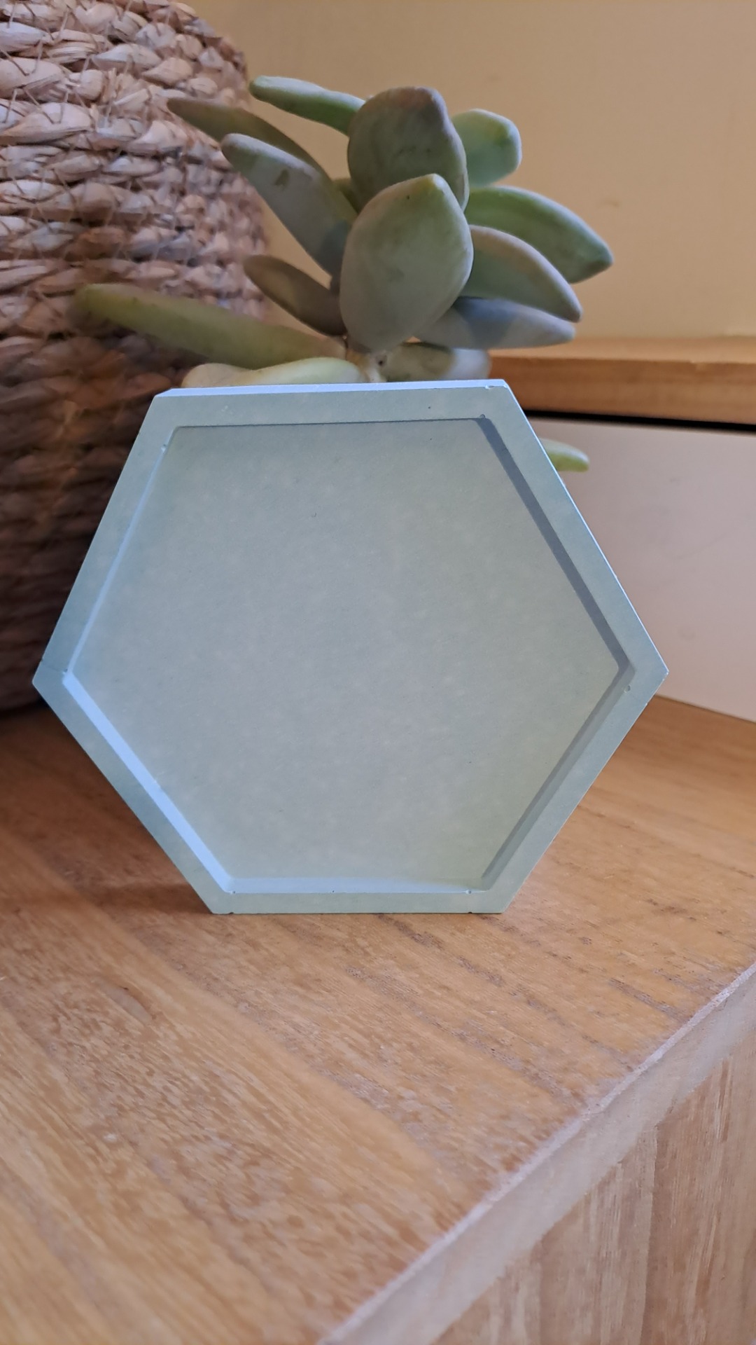 Sotto bicchieri a forma esagonale/rettangolare e dalle tonalità turchese con venature bianco/blu