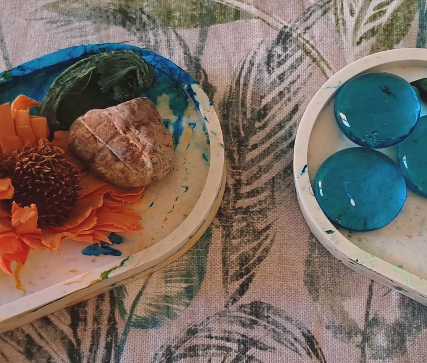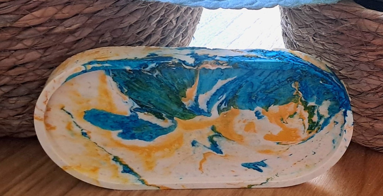 Mini vassoi dalla tonalità pop art con schizzi giallo/blu e rosa con pietre rialzate
